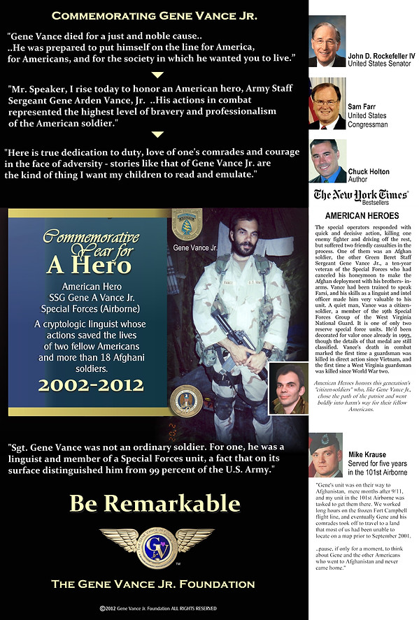 I Applaud your commitment to those that have made the ultimate sacrifice for our Nation & fellow man. Truly upright. As one who has had many friends pay the ultimate cost in these wars, I thank The Gene Vance Jr. Foundation from the bottom of my heart.